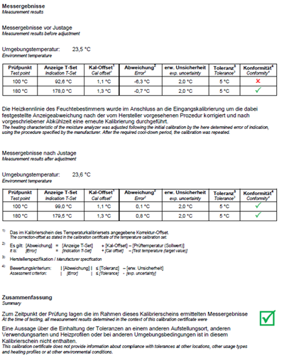 Ab sofort ergänzt eine weitere Dienstleistung das Angebot von KERN: die Temperaturkalibrierung von Feuchtebestimmern. Die Einhaltung der korrekten Temperatur ist entscheidend für die Vergleichbarkeit der Ergebnisse von Feuchtbestimmungen. Durch regelmäßige Kalibrierungen der Temperatur können Sie dies gewährleisten - wenden Sie sich dazu einfach an uns.