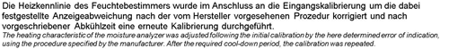 Das im Kalibrierschein angegebene Temperaturkalibrierset wird nach Herstellerangaben in der auf Raumtemperatur abgekühlten Heizkammer installiert und diese verschlossen. Die Heizkammer des Feuchtebestimmers wird mit dem angegebenen Heizprofil auf die jeweilige Prüftemperatur aufgeheizt (Sollwert). Nach der angegebenen Zeit wird die Anzeige des Temperaturkalibriersets abgelesen.