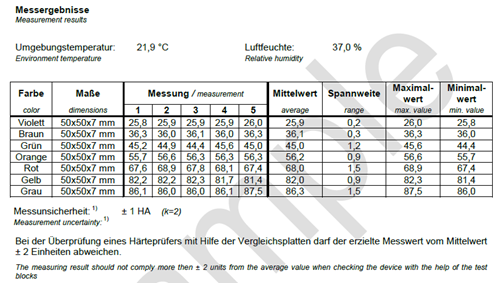 Die Preise für die Kalibrierung von Shore Härtevergleichsplatten sind wie folgt: